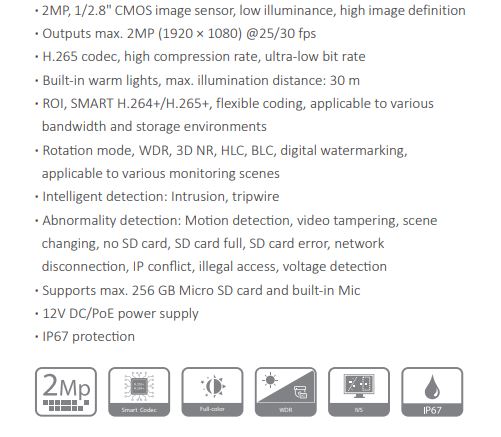 ویژگی های مهم دوربین داهوا IPC-HDW2231T-AS